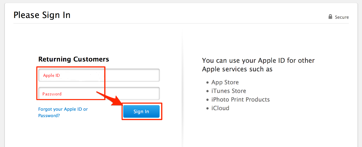 If you don’t already have an Apple ID you can create one by clicking on the “Create yours now” link next to “Don’t have an Apple ID?”
