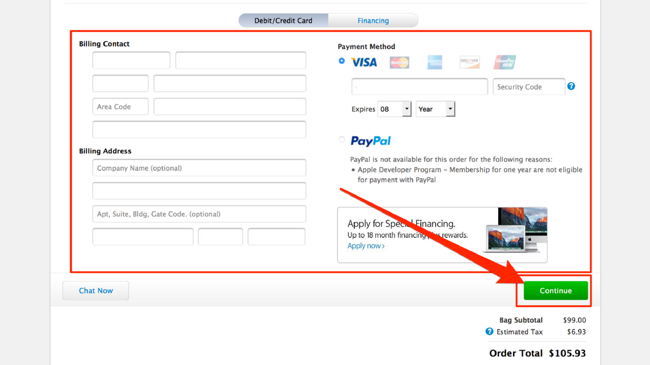 Step 8: Fill in your billing information then click Continue to finalize your payment.